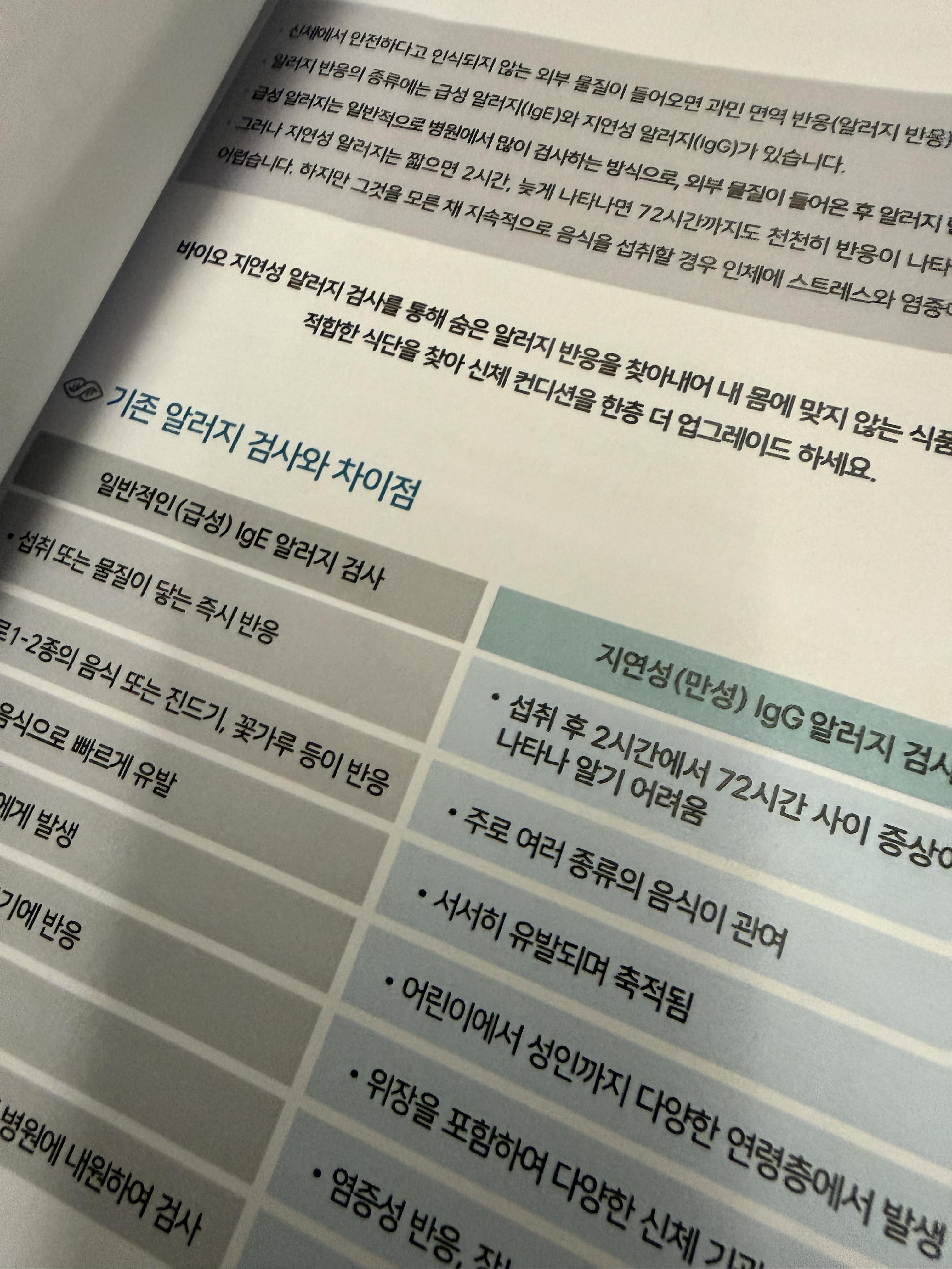 요새 몸이 전과 다르고 면역력이 약해진게 확 느껴져서 유투브를 보던 중에 지연성 알러지 검사를 알게되었습니다. 검사를 받고 밀가루가 5단계 음식이라는 것에 놀랐지만 3개월동안 안먹도록 노력해보려고 해요. 나한테 어떤게 안맞고 맞는지를 알 수 있어서 건강 관리에 도우이 많이 될것 같아요!