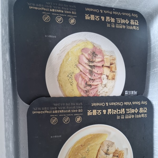 수비드제품 앞에 닭다리살 먹고 얼마전에 먹었네요 일단 전자렌지 조리라 간편해서 좋아요 앞에 닭다리살먹었을땐 간장양념이 좀 짜다싶었는데 목살은 또 간이 적당하더라구요 오믈렛은 먹기도 편하고 부드럽고 고기가 간이 되어있어서 이건 간이 안되어있는게 딱이더라구요 목살이랑 같이 먹으면 딱 목살도 비계가 살짝있긴한데 고기 자체가 부드러웠어요 밥도 쫀득쫀득하니 맛있었고 다만 채소가없다는게 항상 아쉽긴했어요 간편식인데 맛있어서 만족하며 먹었어요