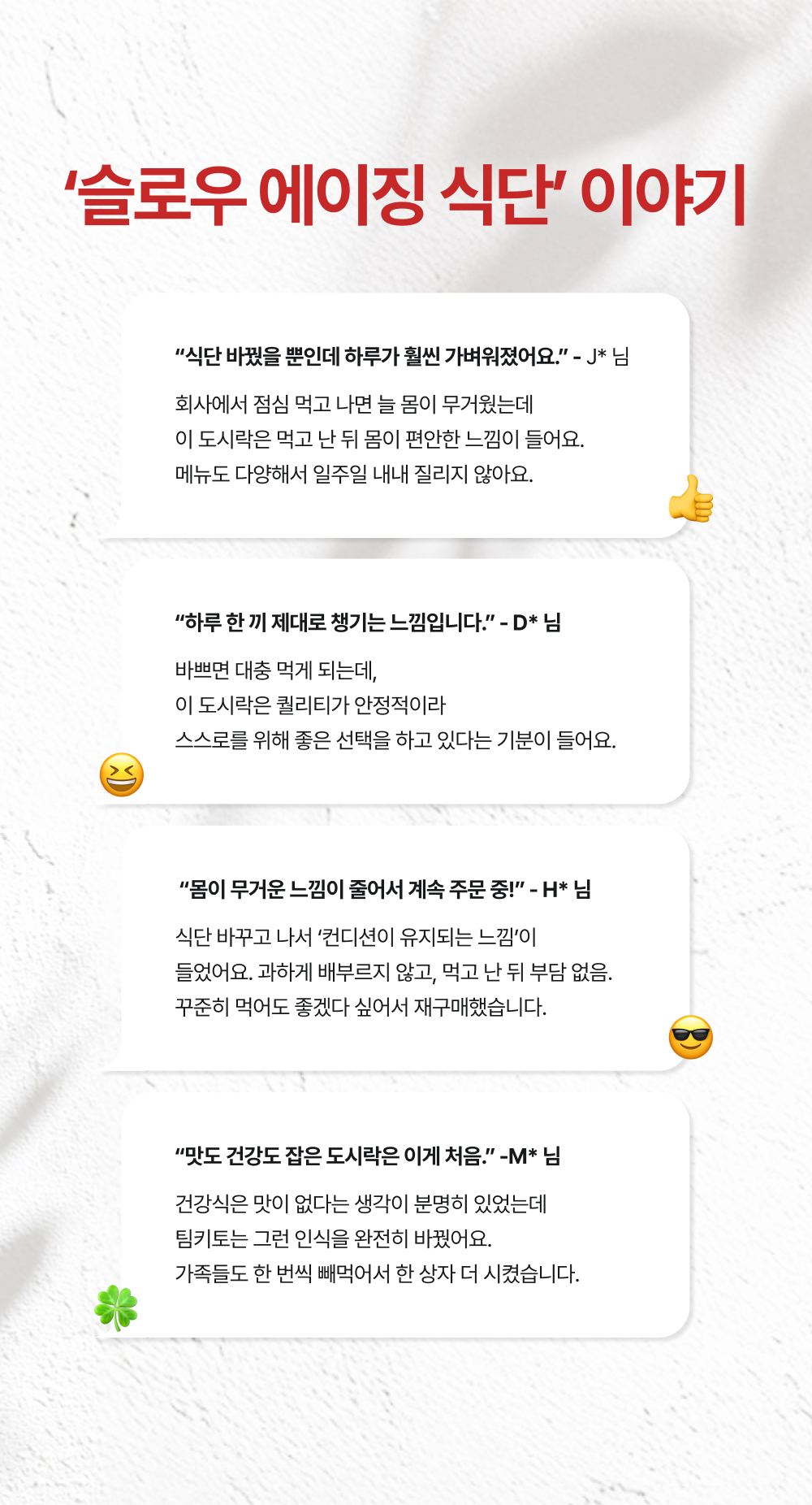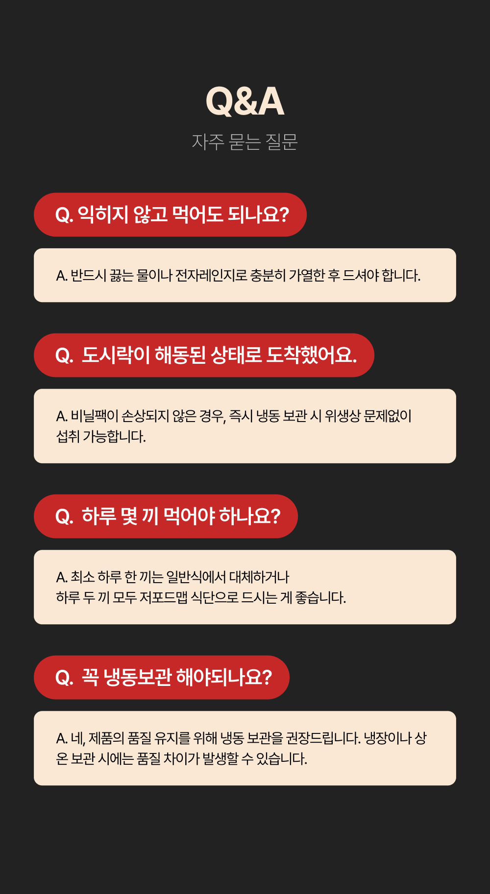 | 반품/교환 안내 | 제품 수령 후 7일 이내의 미개봉 상품은 교환 및 반품이 가능합니다. 단순 변심에 의한 교환 및 반품은 왕복 배송비가 부과됩니다. 세트상품의 부분 반품의 경우 총 결제금액에서 이용 상품의 정가와 반품배송비를 제외한 나머지 금액이 환불됩니다. 단, 건강기능식품 불만족시 100% 환불 워런티 정책은 해당 기간 내에 별도의 규정을 따릅니다. 자세한 내용은 공지사항을 확인해주세요. |