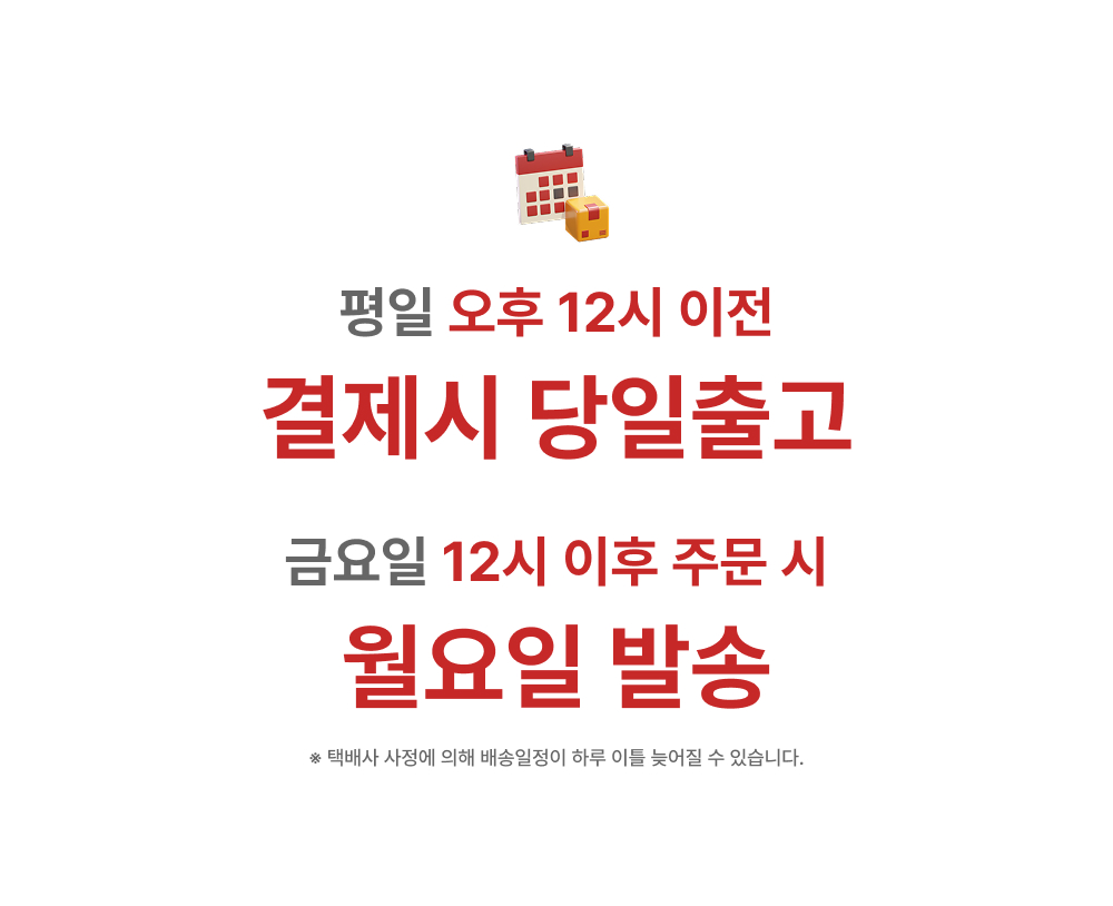 | 반품/교환 신청 기준일 | 상품 수령 후 7일 이내 (단, 미개봉 상품에 한해 가능) |