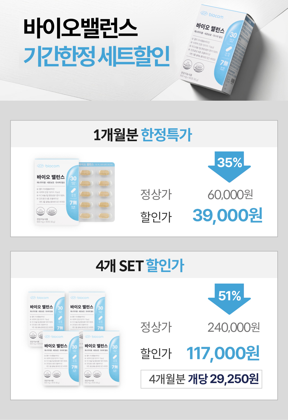 | ※ 안심환불 방법 해당제품: 바이오밸런스, 클린밸런스 , 풍성밸런스, 뉴로마스터, 다래케어 , 메타드림 해당제품 외 다른 제품은 안심환불에 해당 되지 않습니다 | • 환불 조건 1. 제품 수령 후 30일 동안 꾸준히 섭취하신 경우에 환불 가능합니다. 2. 환불 신정은 제품 수령 후 40일 이내에 신청이 가능합니다. 3. 복수 구매 또는 세트 상품 구매 시 동일 종류의 1개만 개봉한 경우 전액 환불이 가능합니다. (ex. 5개 구매 후 1개만 개봉 시 5개 전액 환불, 5개 구매 후 5개 모두 개봉 시 1개만 환불) 4. 왕복 배송비는 고객님 부담입니다. • 환불 신청 1. 바이오컴 1:1 채팅 상담에 '30일 체험 후 환불 신청합니다' 문구와 함께 상품명, 구매일, 구매자 성함, 구매자 연락처, 환불 받으실 계좌번호, 환불 요청할 제품의 상태 사진을 남겨주세요. 2. 사진 확인 및 답변을 받은 후 왕복 배송비 6,000원을 아래 계좌로 입금해주세요. 계좌 : 기업은행 988-020725-04-013 (주)바이오컴 3. 배송비 입금이 확인된 후 제품 회수가 진행됩니다. 4. 상품 상태 확인 후 환불 처리가 완료됩니다. |