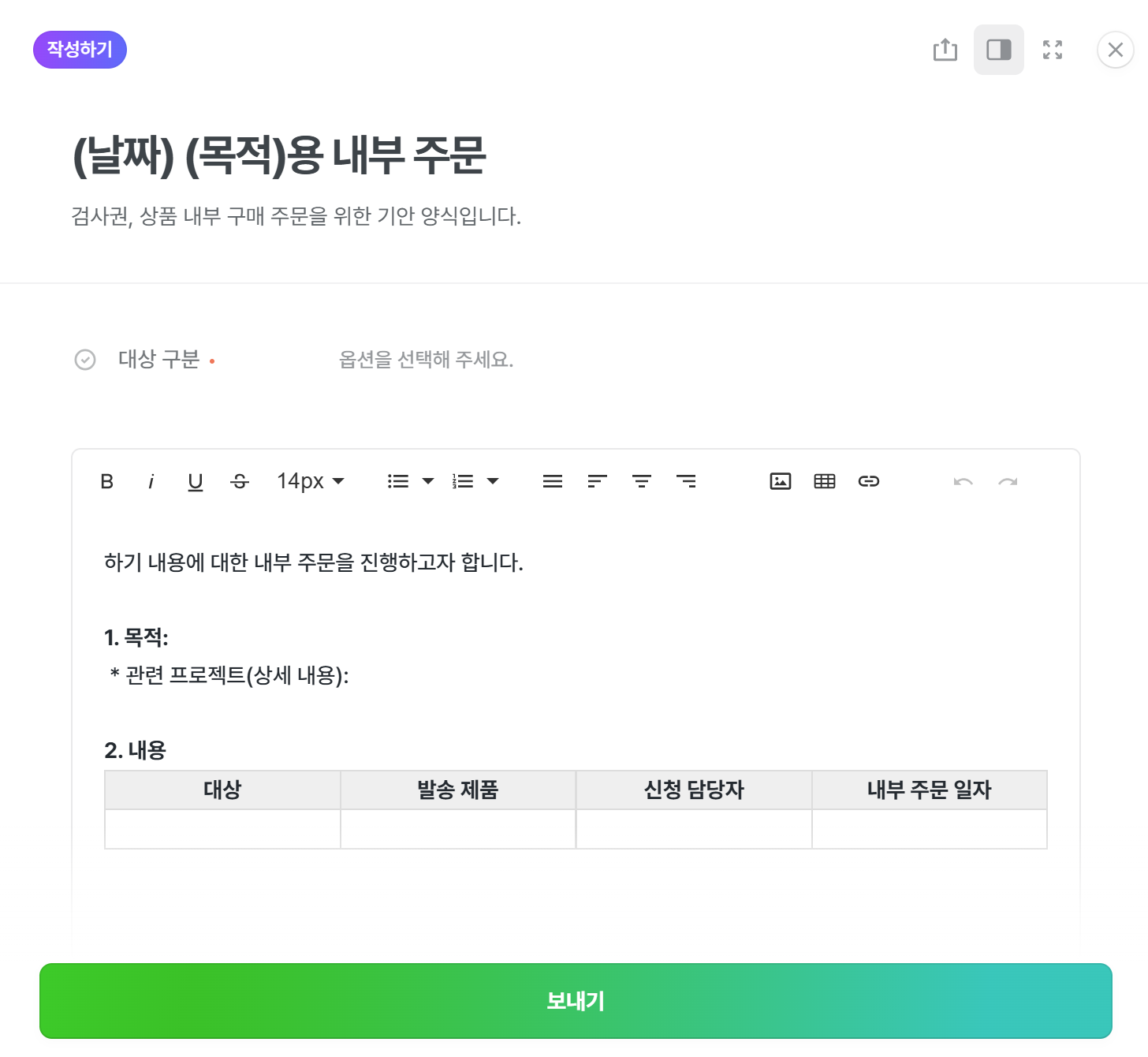 투명한 회계 및 비용 처리 관리를 위해 공식 문서인 기안 작성을 진행해주세요.