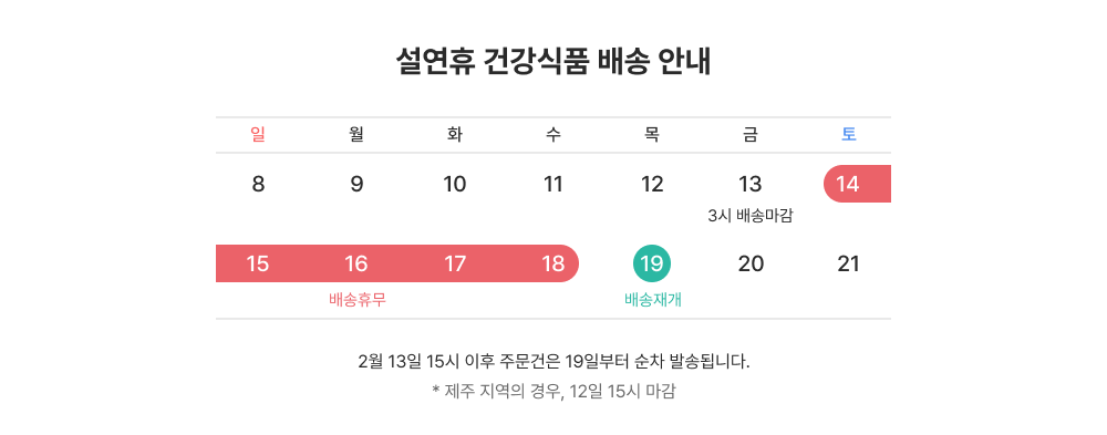 | 반품/교환 안내 | 제품 수령 후 7일 이내의 미개봉 상품은 교환 및 반품이 가능합니다. 단순 변심에 의한 교환 및 반품은 왕복 배송비가 부과됩니다. 세트상품의 부분 반품의 경우 총 결제금액에서 이용 상품의 정가와 반품배송비를 제외한 나머지 금액이 환불됩니다. 단, 건강기능식품 불만족시 100% 환불 워런티 정책은 해당 기간 내에 별도의 규정을 따릅니다. 자세한 내용은 공지사항을 확인해주세요. |