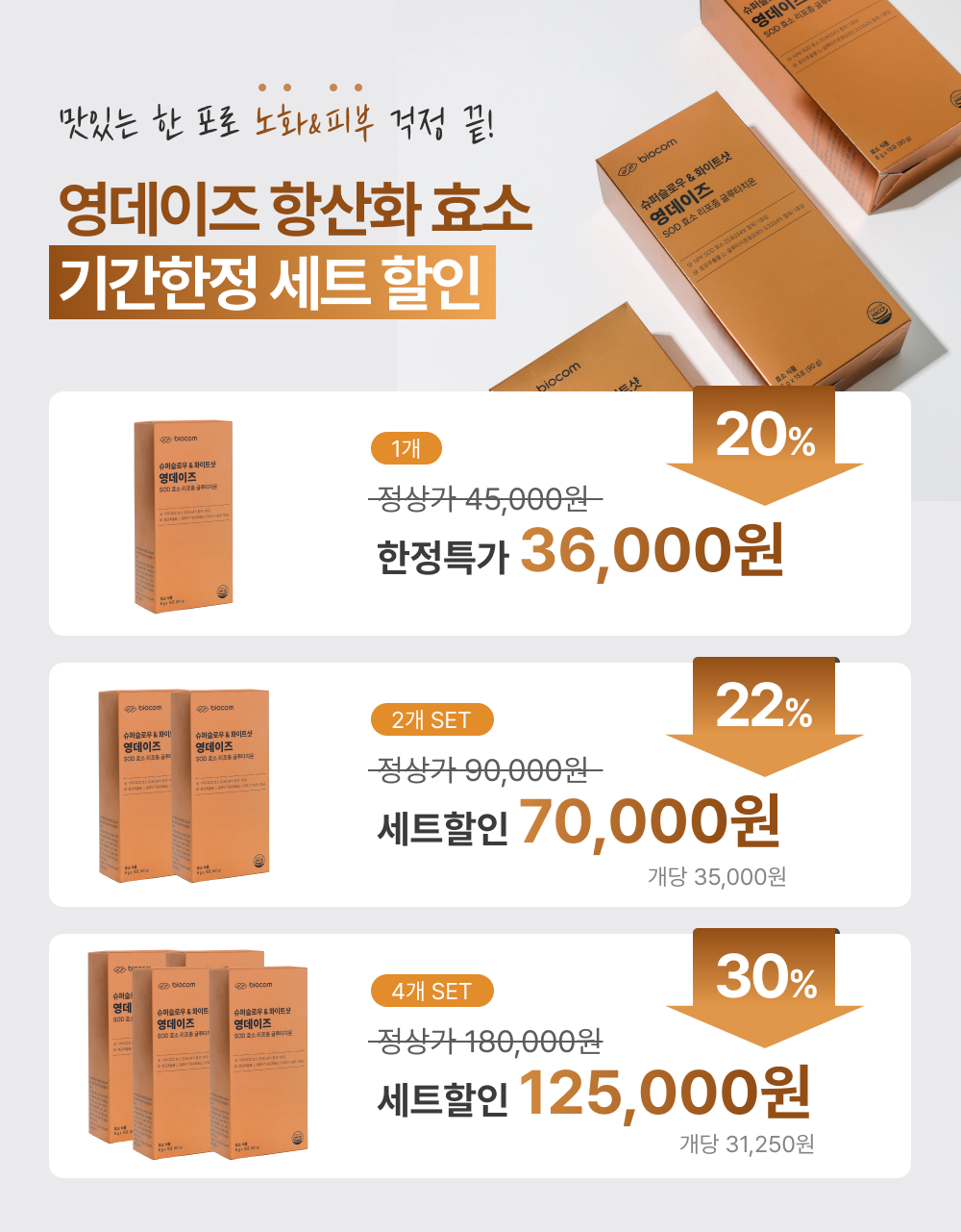| 반품/교환 안내 | 제품 수령 후 7일 이내의 미개봉 상품은 교환 및 반품이 가능합니다. 단순 변심에 의한 교환 및 반품은 왕복 배송비가 부과됩니다. 세트상품의 부분 반품의 경우 총 결제금액에서 이용 상품의 정가와 반품배송비를 제외한 나머지 금액이 환불됩니다. 단, 건강기능식품 불만족시 100% 환불 워런티 정책은 해당 기간 내에 별도의 규정을 따릅니다. 자세한 내용은 공지사항을 확인해주세요. |