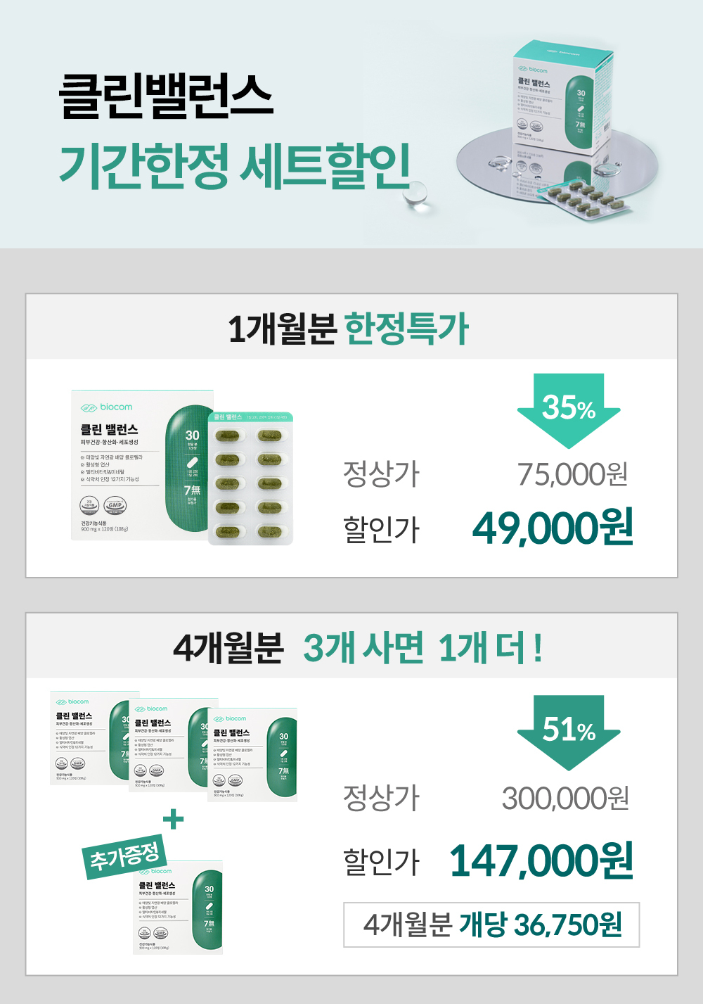 | ※ 안심환불 방법 해당제품: 바이오밸런스, 클린밸런스 , 풍성밸런스, 뉴로마스터, 다래케어 , 메타드림 해당제품 외 다른 제품은 안심환불에 해당 되지 않습니다 | • 환불 조건 1. 제품 수령 후 30일 동안 꾸준히 섭취하신 경우에 환불 가능합니다. 2. 환불 신정은 제품 수령 후 40일 이내에 신청이 가능합니다. 3. 복수 구매 또는 세트 상품 구매 시 동일 종류의 1개만 개봉한 경우 전액 환불이 가능합니다. (ex. 5개 구매 후 1개만 개봉 시 5개 전액 환불, 5개 구매 후 5개 모두 개봉 시 1개만 환불) 4. 왕복 배송비는 고객님 부담입니다. • 환불 신청 1. 바이오컴 1:1 채팅 상담에 '30일 체험 후 환불 신청합니다' 문구와 함께 상품명, 구매일, 구매자 성함, 구매자 연락처, 환불 받으실 계좌번호, 환불 요청할 제품의 상태 사진을 남겨주세요. 2. 사진 확인 및 답변을 받은 후 왕복 배송비 6,000원을 아래 계좌로 입금해주세요. 계좌 : 기업은행 988-020725-04-013 (주)바이오컴 3. 배송비 입금이 확인된 후 제품 회수가 진행됩니다. 4. 상품 상태 확인 후 환불 처리가 완료됩니다. |